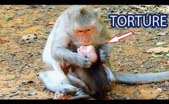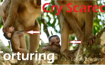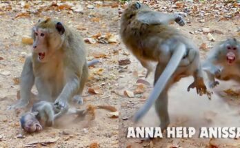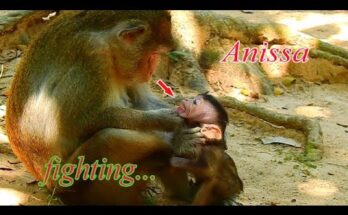 Brainless Anna fighting baby Anissa so hard, baby monkey Anissa cries till lost sound Read More